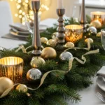 22 Nature-Meets-Glam New Year Pine & Metallic Table-Runner Ideas