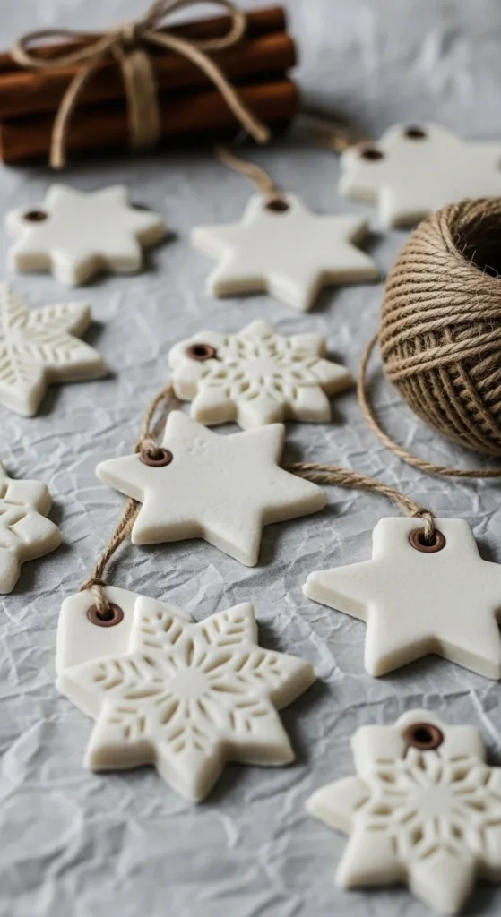 Salt dough is inexpensive and fun. Mix flour, salt, and water, roll out, cut shapes with cookie cutters, and poke holes for ribbon. Once dry, paint lightly or leave natural. Stamp initials or press greenery for texture before baking. These tags feel charming tied to gifts, hung as ornaments, or strung as garland. Bake low and slow so pieces dry evenly. Keep shapes simple for elegance. Make a batch on a cozy weekend and let kids decorate their own. They store well if wrapped in tissue.