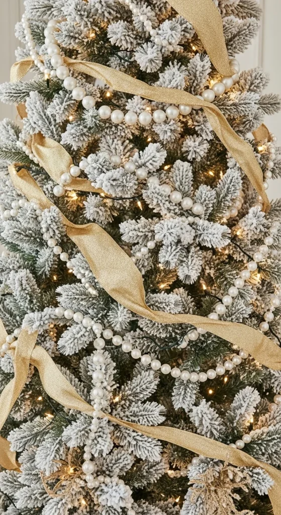 Introduce pearl strands as tree garland. They blend flawlessly with gold ribbon and add soft elegance. Pearl texture brings couture feel without sparkle overload. For a subtle look, drape pearls loosely. For drama, layer multiple strands. Works especially well on flocked or pale-green trees. Balance with matte ornaments to keep texture mix rich, not shiny everywhere.