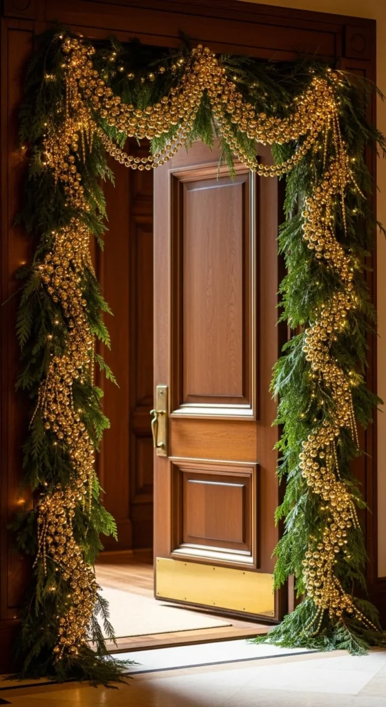 Frame doorways with bead garland and simple lights. Add greenery if space allows. Use removable hooks for easy cleanup. This trick draws the eye upward and creates holiday flow between rooms.