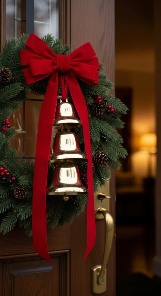 Hang oversized gold bells at your entry. Tie with velvet ribbon for a polished touch.