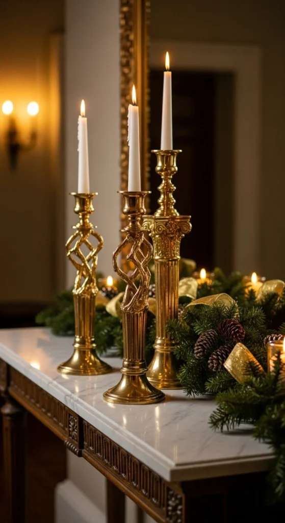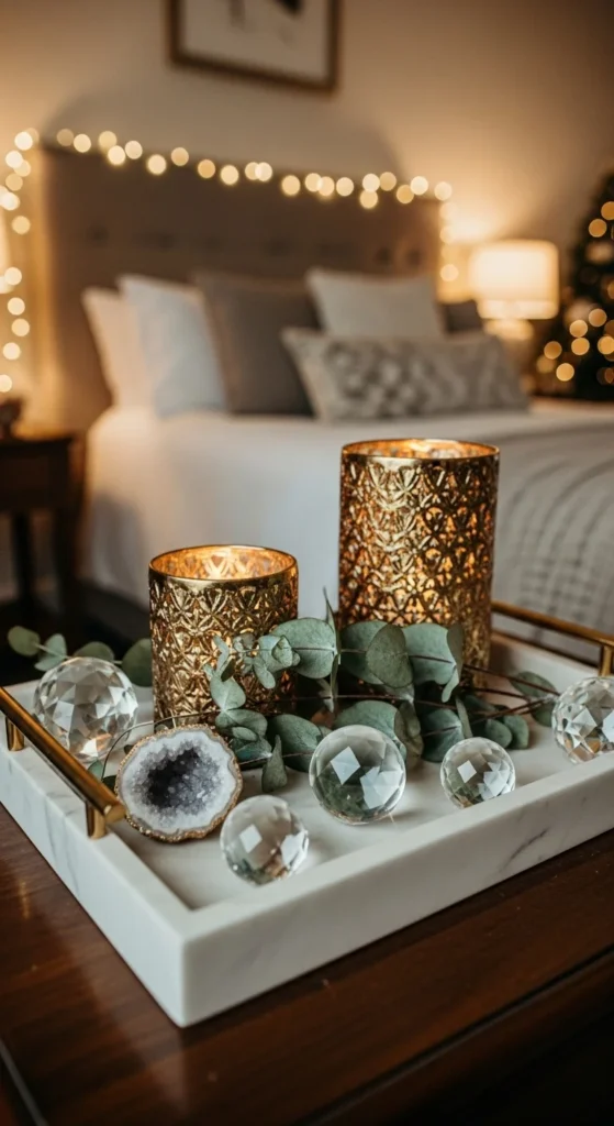 On a budget? Spray-paint old ornaments gold and use clear glass thrifted pieces. Add faux pearl strands or delicate gold beads to complete the look. The result feels timeless, rich, and warm.