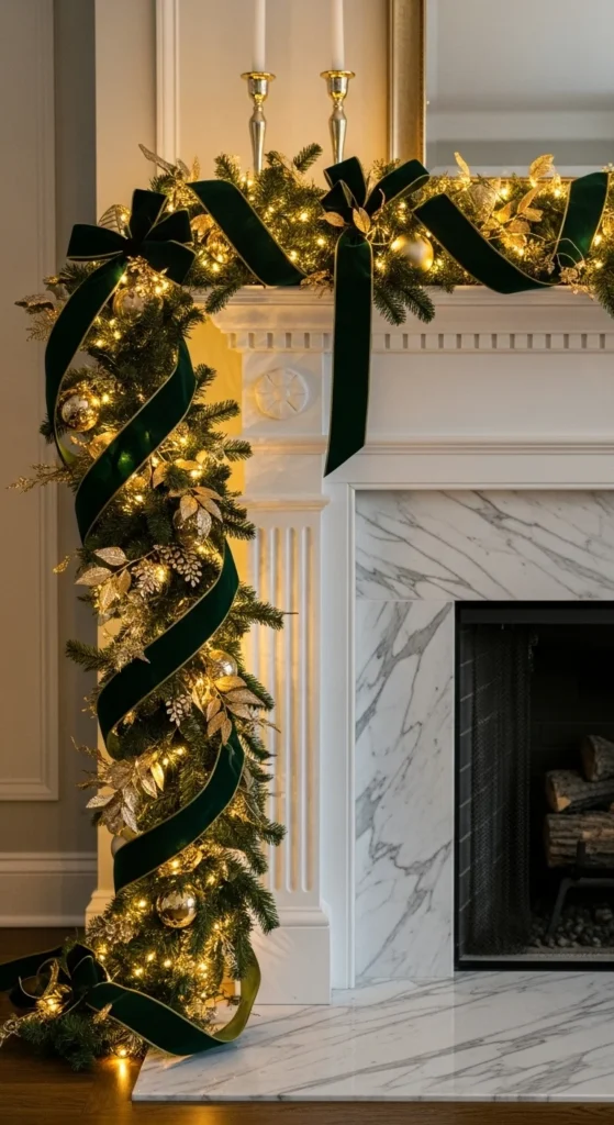 Velvet ribbon instantly gives garlands that elegant finish. Choose deep jewel tones like emerald, burgundy, or navy. Weave the ribbon loosely and let long tails fall naturally.