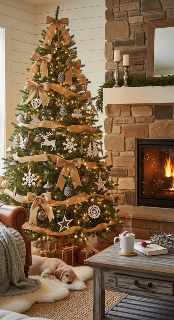 Rustic farmhouse style is cozy and approachable. Burlap ribbon, wooden decorations, and small metal accents give a homely feel. Add miniature stockings or DIY fabric stars. Use warm white lights to enhance charm. Most materials are inexpensive and easily available at craft stores.