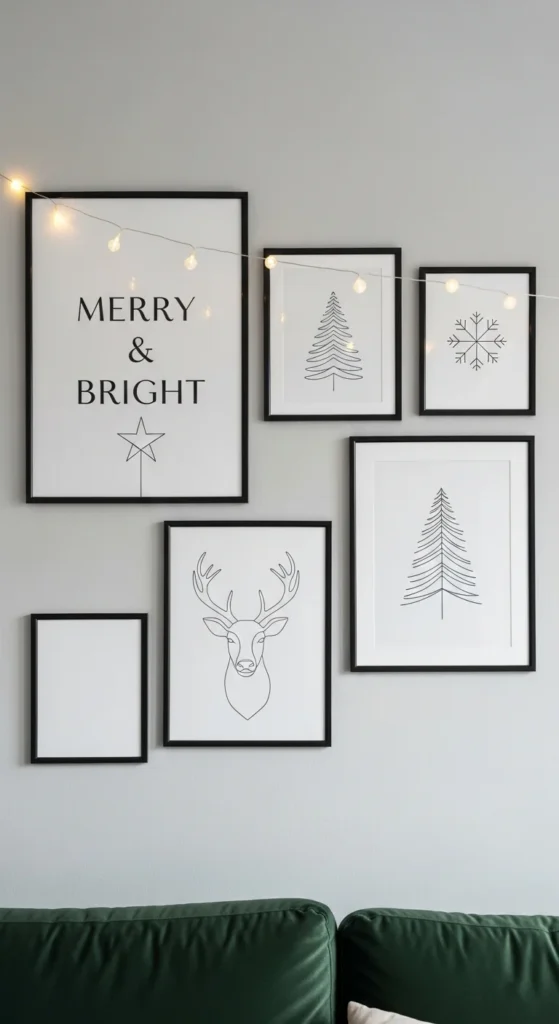 Swap out your usual artwork for Christmas-themed prints. Choose minimalist designs that suit your palette. It’s an easy switch that adds instant festive flair without clutter.