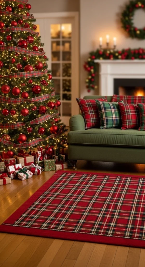 Nothing says Christmas quite like red and green classics. Use these colors through ribbons, pillows, and garlands for a timeless setup. Add texture with knitted cushions and plaid throws. If your walls are neutral, this bold contrast pops beautifully. For a touch of nostalgia, include old-fashioned ornaments or framed holiday cards from family years past.