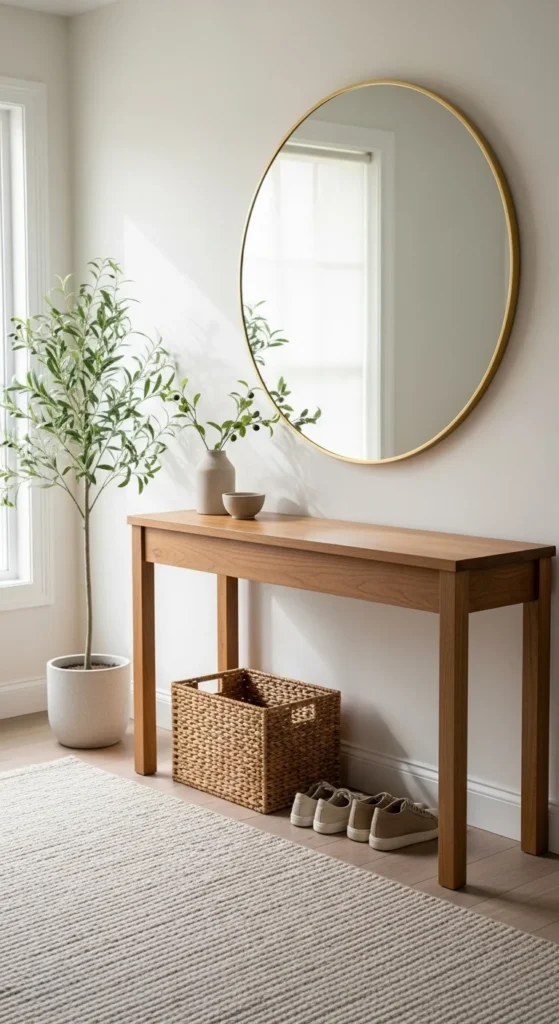 Mirrors do triple duty in entryways — they bounce light around, make small spaces feel larger, and help you check your look before heading out.