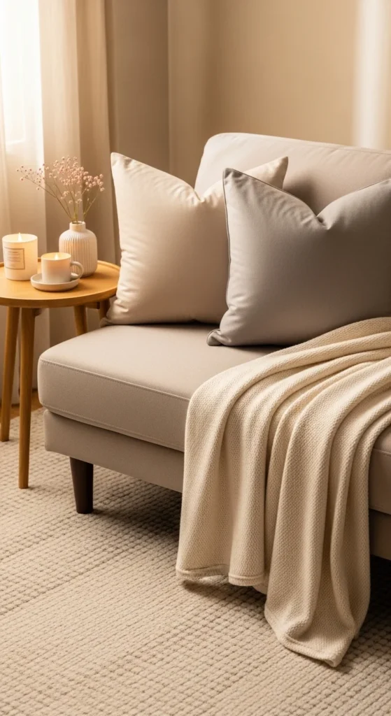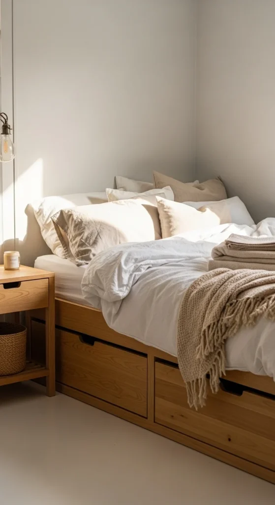 Minimal doesn’t mean boring — tiny spaces thrive on meaningful layers. Use cozy details to create warmth without crowding.