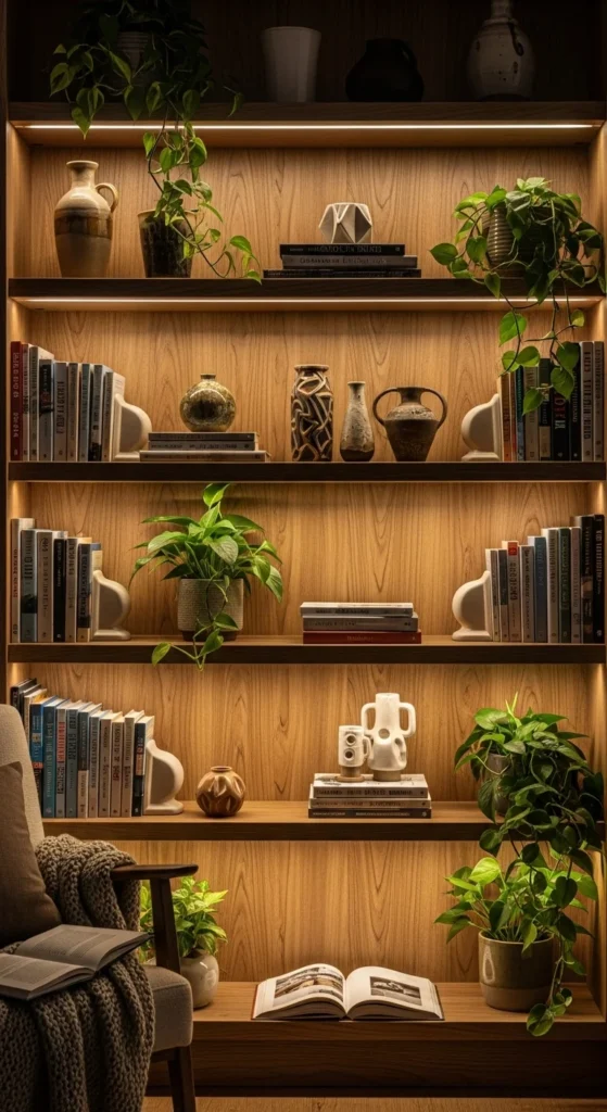 - LED strips inside bookshelves or behind media consoles