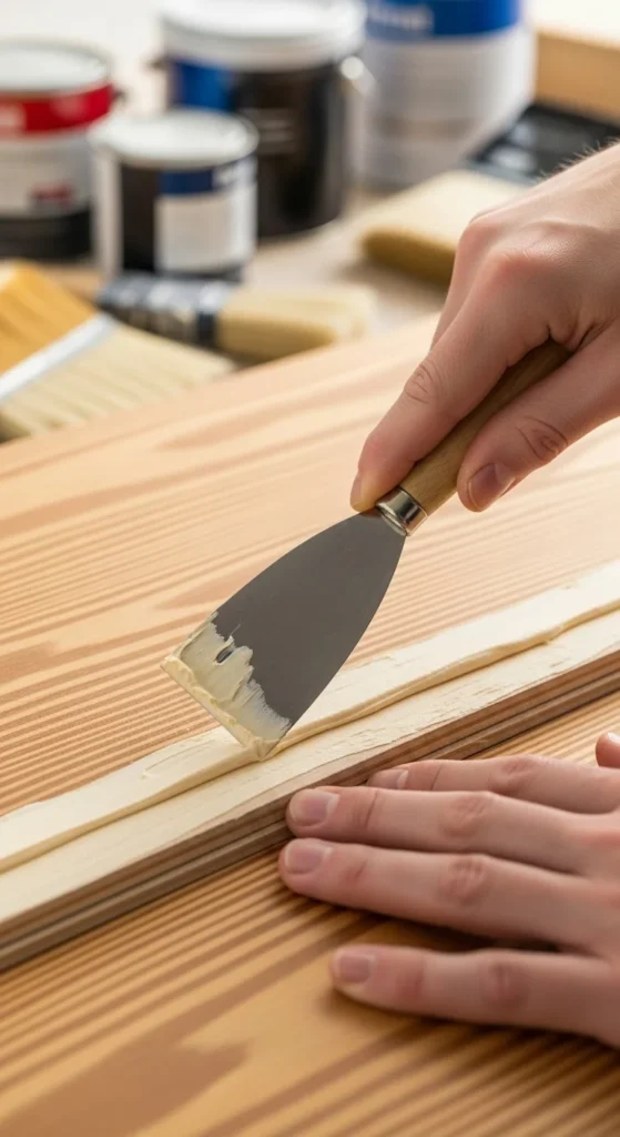 - Wood filler + sandpaper