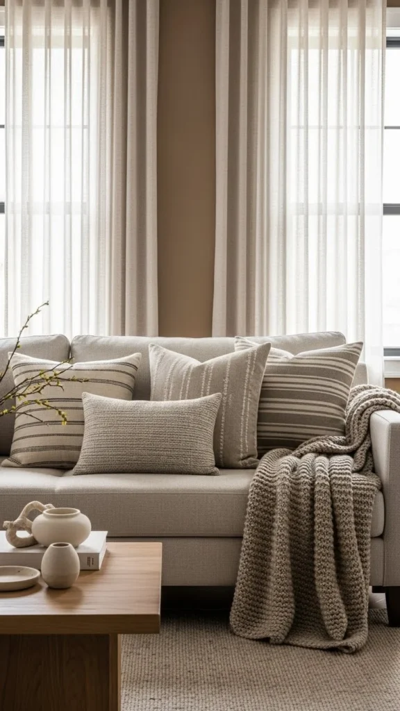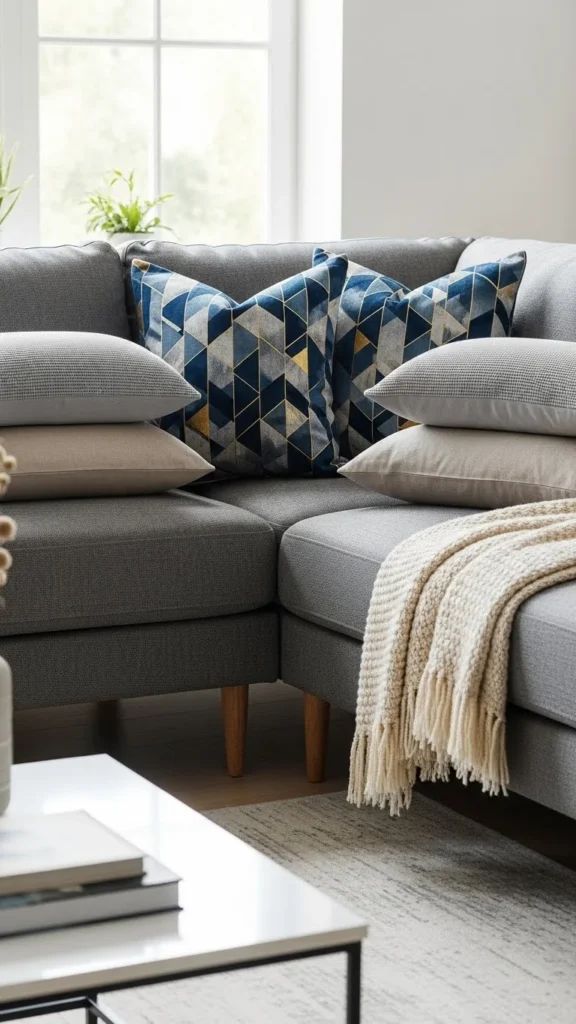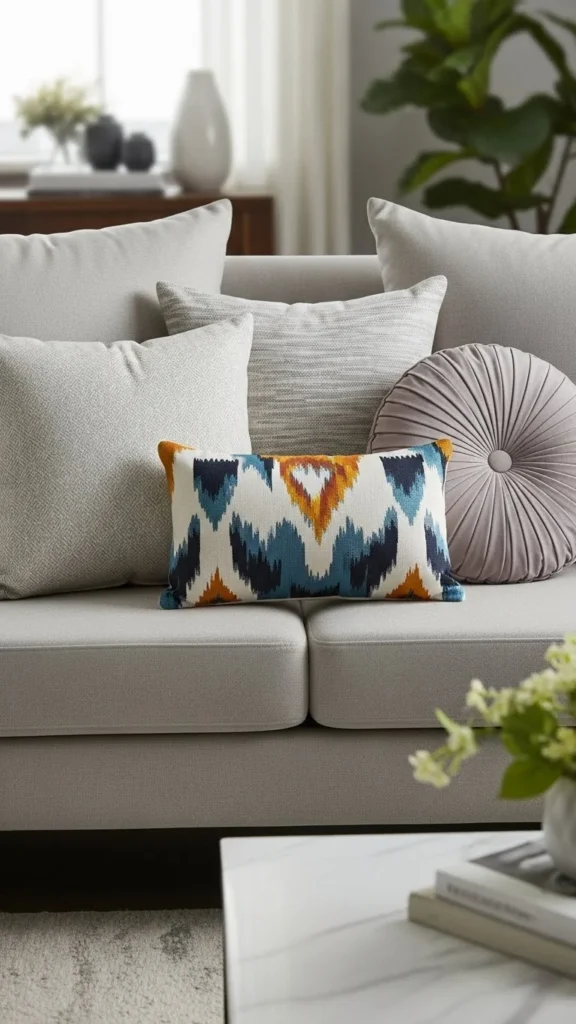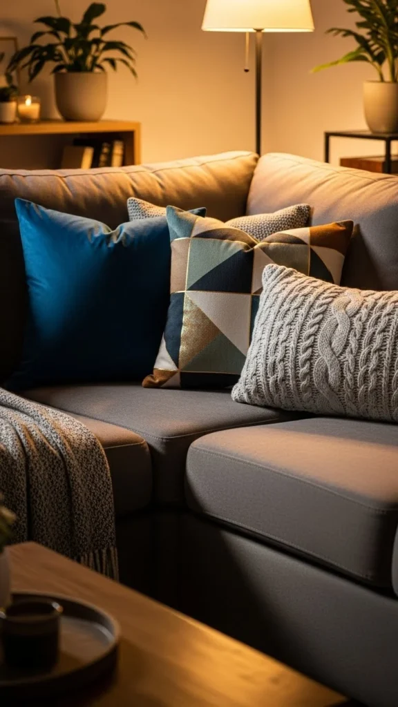 Aim for at least two textures in every arrangement. They create visual contrast and make your sofa feel styled rather than flat.