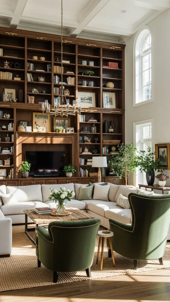 High ceilings require furniture with presence. Small or low-profile pieces can make the room feel disproportionate.