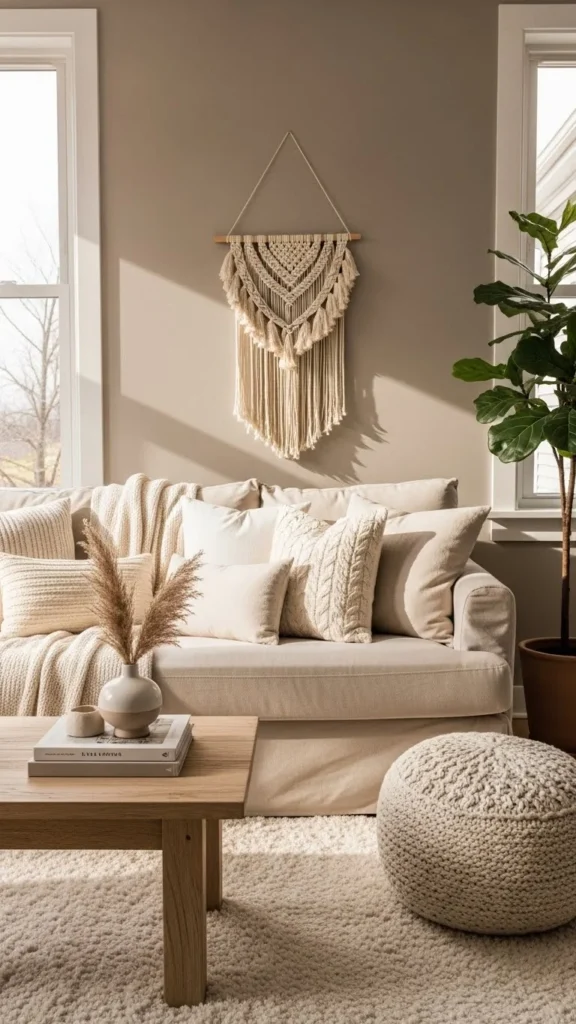 A neutral room becomes interesting when it includes multiple shades of neutral rather than just one flat tone. Instead of using only beige or only grey, expand your palette.