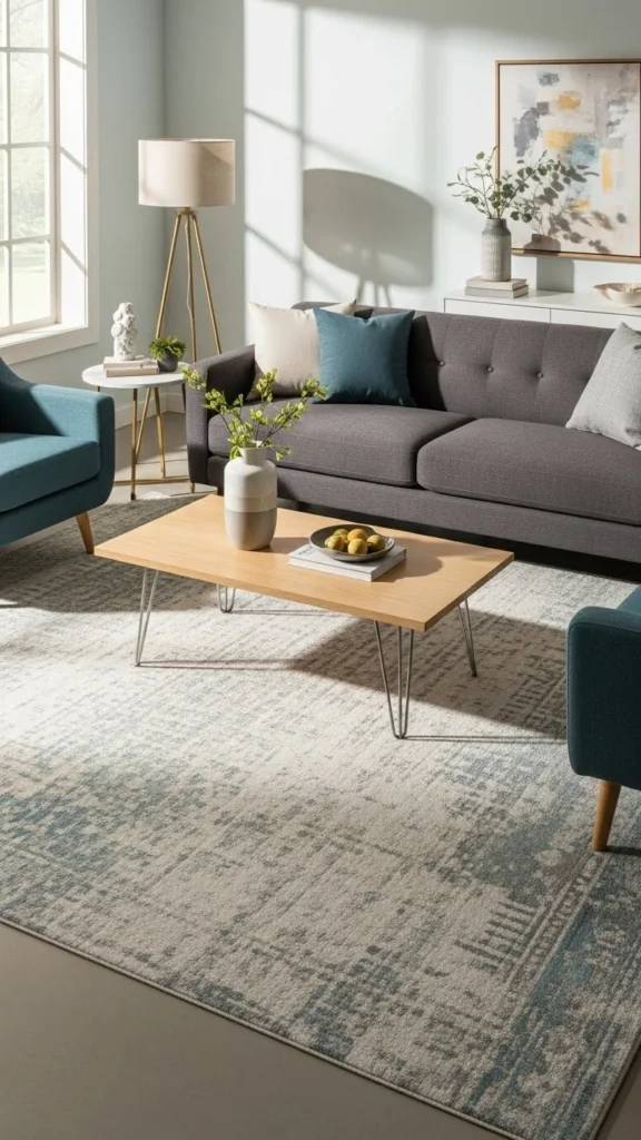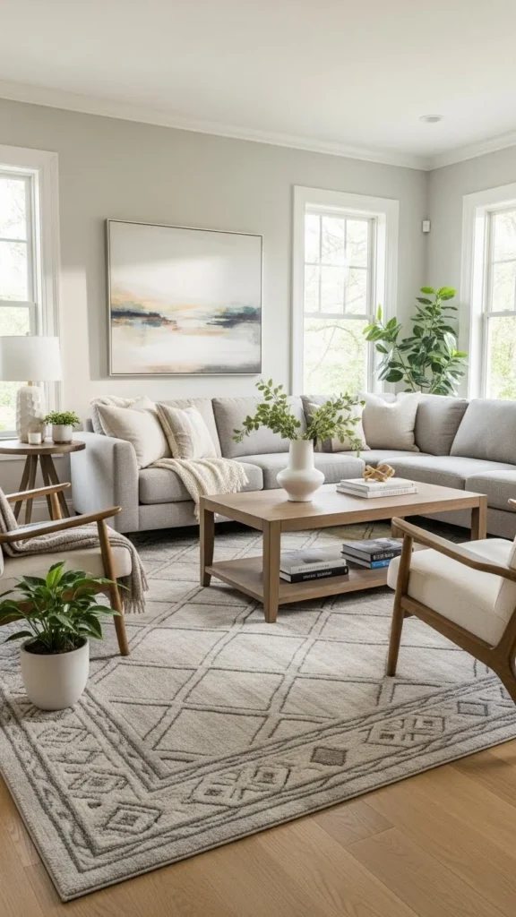 Living rooms are where rug sizing mistakes happen most often. People tend to choose rugs that are too small because large ones feel intimidating—but a small rug can throw off the entire room.