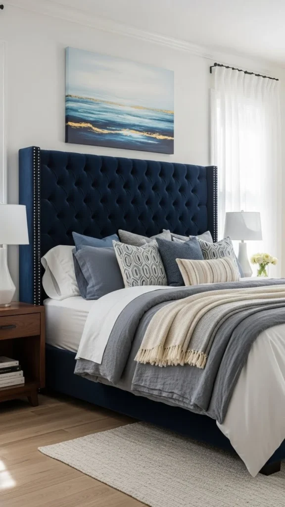 A headboard wall treatment creates visual depth and instantly becomes the centerpiece of the room.