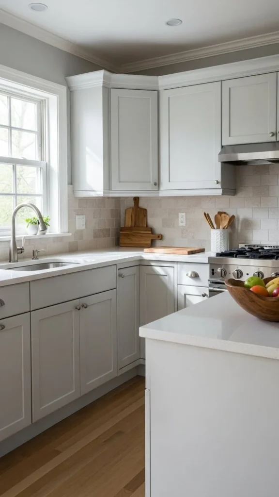 - Pale gray, greige, or warm beige walls