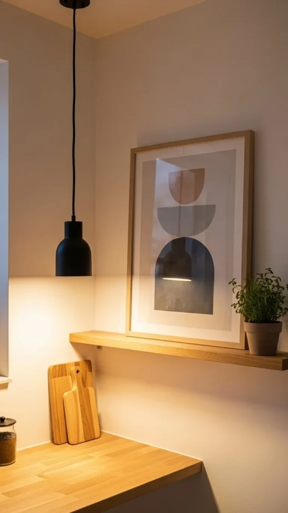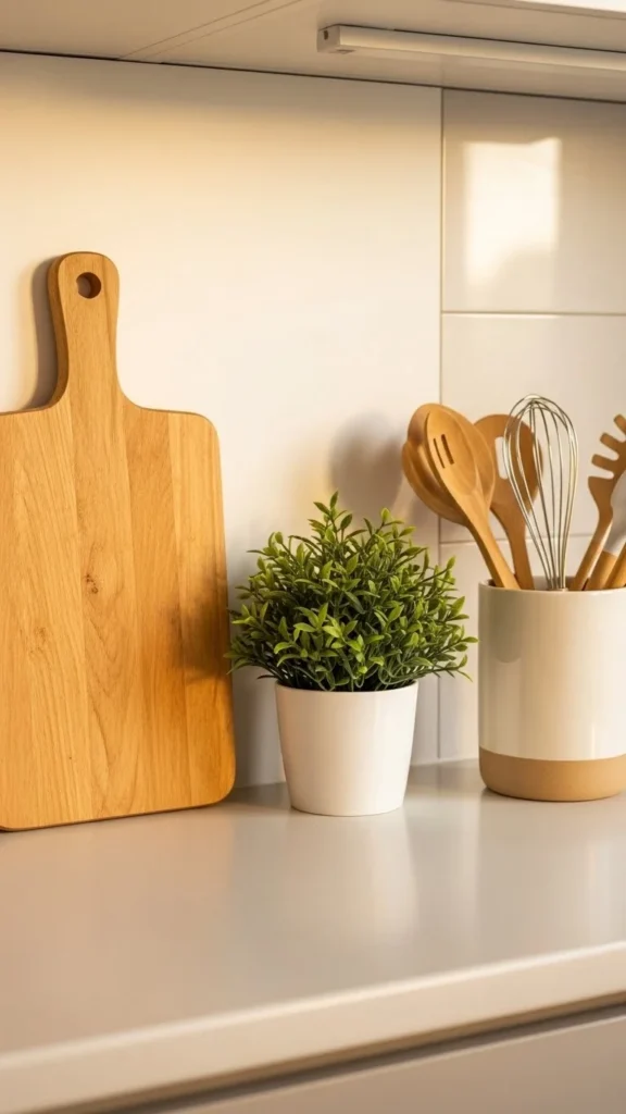 In a compact kitchen, every decorative piece should earn its place. Oversized decor overwhelms quickly.