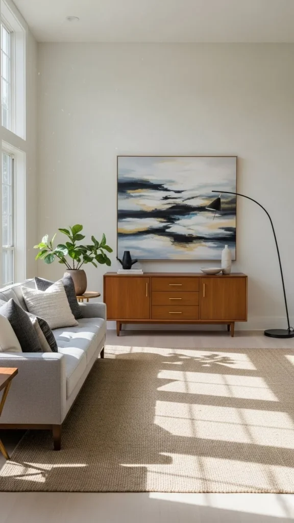 - Fresh contemporary art above a vintage console