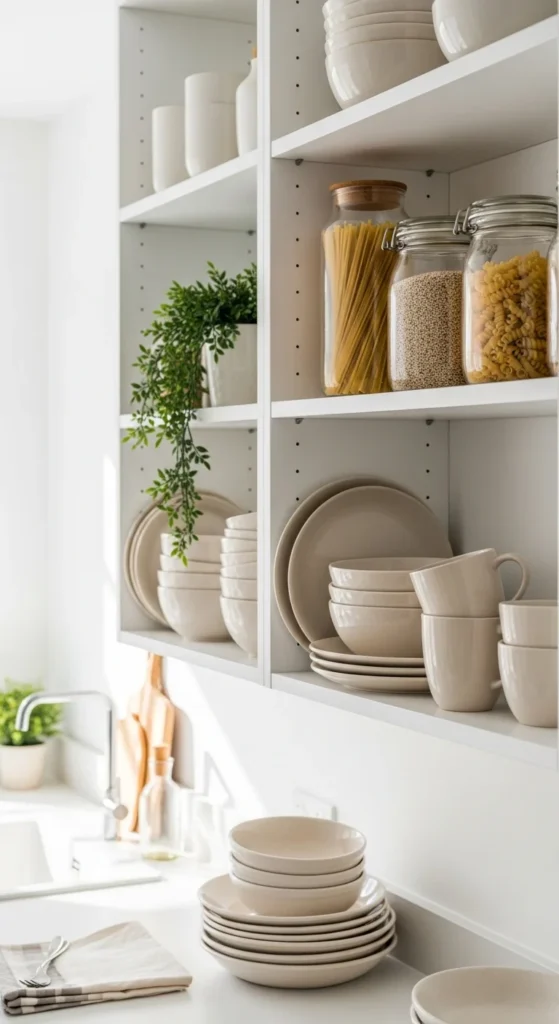 Every item on an open shelf should earn its place. If something feels random, remove it.