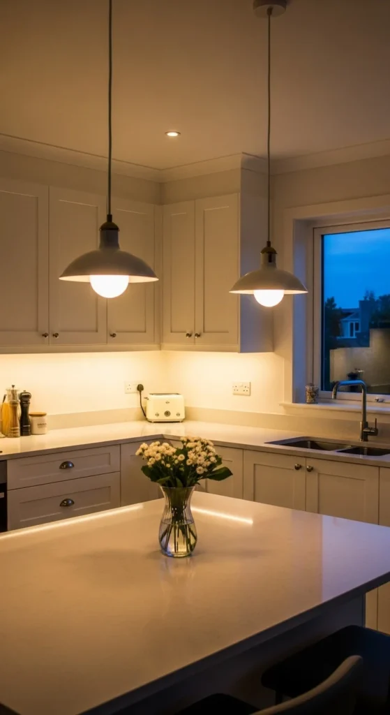 Even a bulb change can dramatically improve how the kitchen feels after sunset.