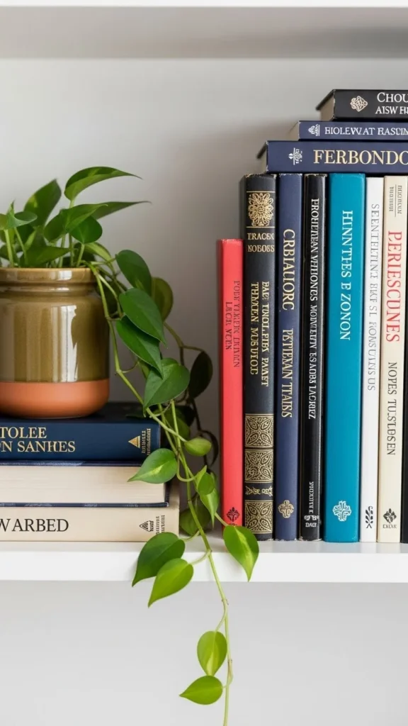 A curated bookshelf isn’t about matching everything—but about harmony.