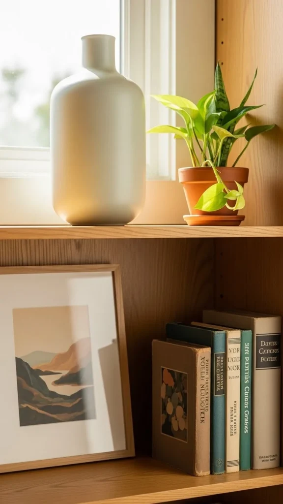 But keep it selective. Too many personal items turn shelves into storage rather than décor.