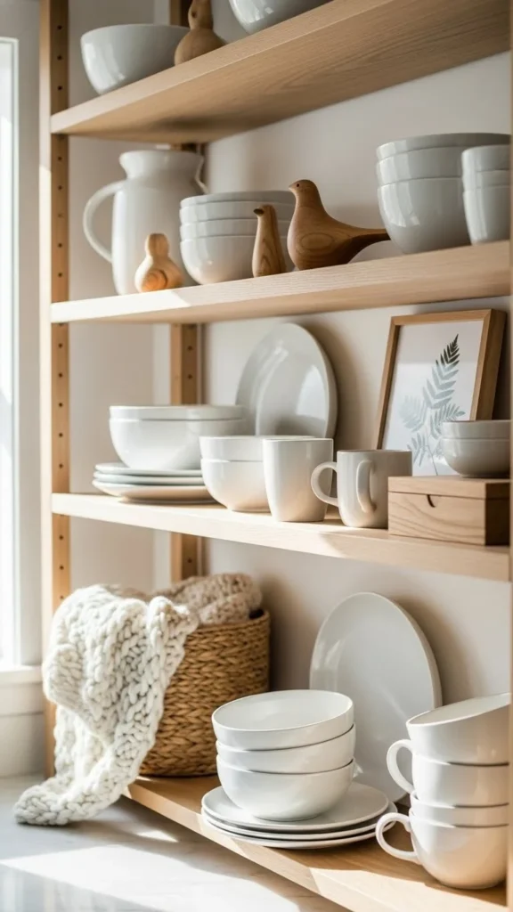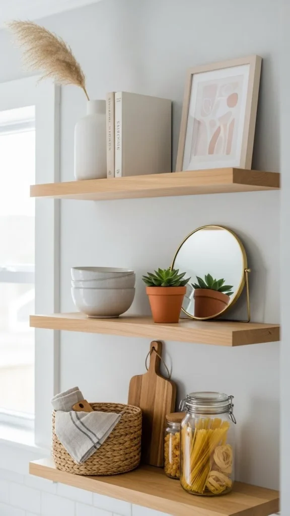 Styling kitchen shelves with decor pieces isn’t about filling space—it’s about creating balance. When you mix functional items with a few well-chosen decor pieces, stick to a simple color palette, and leave breathing room, your shelves instantly look polished and intentional.