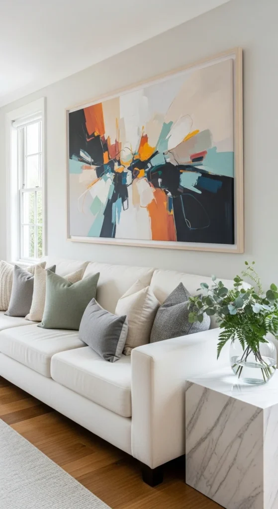 Small decor can feel busy — but large art pieces create a focal point and feel designer-level chic.
