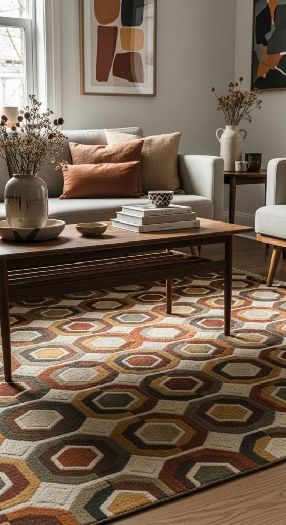 Keep it simple but fun — mid-century rugs are art under your feet.