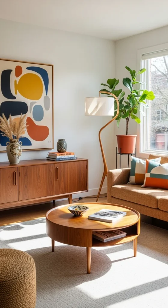 **Pro Tip:** Opt for warm woods like walnut and teak to get that authentic mid-century feel.