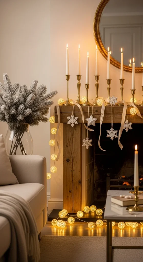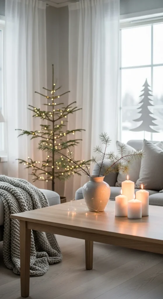 Scandi style focuses on simplicity, warmth, and nature. Use light wood tones, creamy whites, and greenery accents. Keep decor restrained — one garland, a few candles, and a cozy knit throw go far. Choose items with texture instead of bright color.