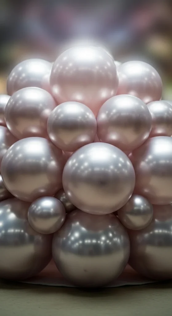 Wrap the entire balloon cluster in tulle for a diffused effect. Choose ivory or champagne tulle. Tie tulle at the bottom with a thin satin ribbon. Add faint LED lights inside the cluster for soft illumination. Works well where minimal sparkle is preferred.