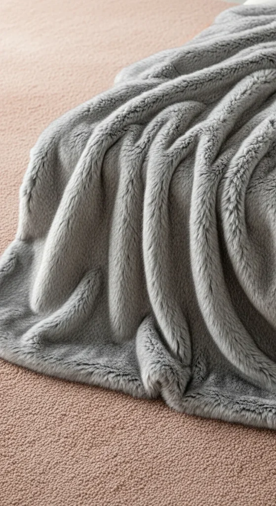 20. Silver Faux-Fur Throw Over a Blush Rug