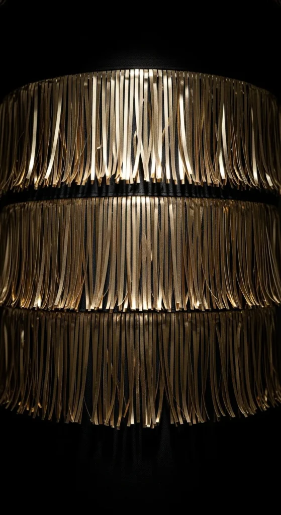 Attach fringe sheets onto a black fabric sheet so gold stands out clearly in photos. Hang the fabric from a rod or backdrop stand. This trick is useful when decorating in bright rooms because black creates contrast. Use a handheld steamer on fabric (not fringe) to remove creases. Add gold tassel strings spaced every 10 inches for texture. Store fabric rolled, not folded.