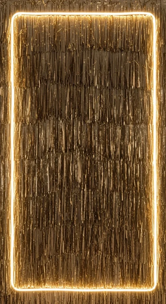 Install LED strip lights around the entire frame to outline the fringe. Pick warm light so gold stays soft. Avoid harsh blue tones. Use adhesive clips for clean lines. This creates a glowing box effect that suits photo-booths and dessert layouts.