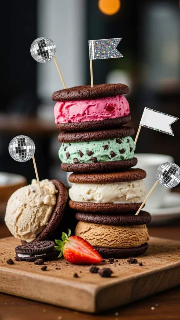 13. Ice Cream Sandwich Stack With Disco-Flag Toppers