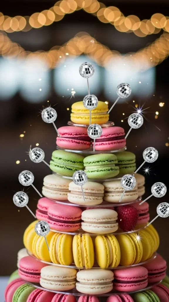 4. Macaron Tower With Disco-Ball Picks