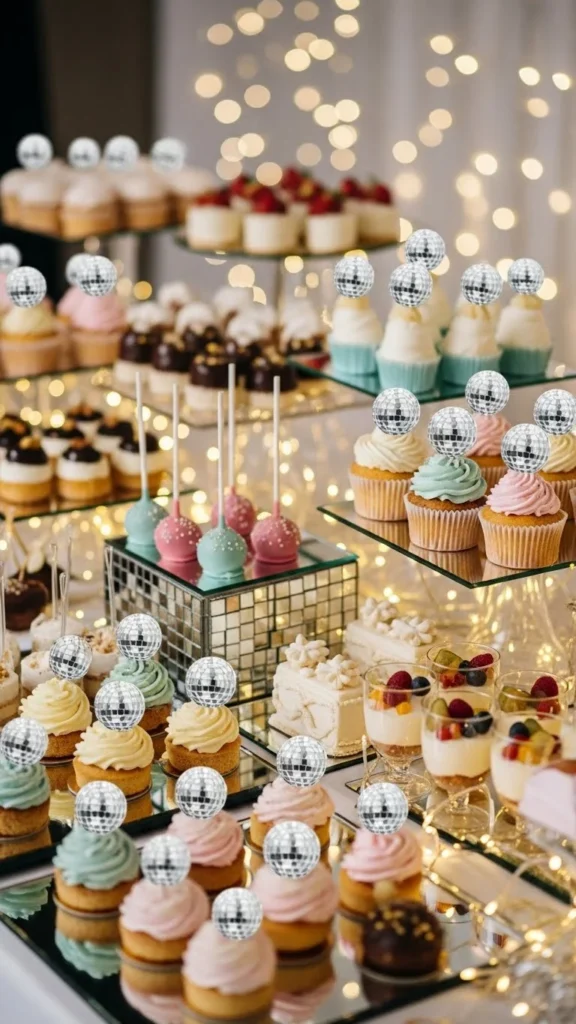 Disco-ball toppers help desserts look photo-ready and party-focused, even when using simple recipes. By adding picks, tags, stirrers, mirror tape, fondant shapes, or hanging props, you can upgrade cupcakes, brownies, mousse cups, donuts, waffle bites, and jar desserts without complex baking. Choose soft lighting, neutral frosting tones, and sturdy sticks so toppers stay upright. Experiment with one idea or mix two styles based on table layout and container types.