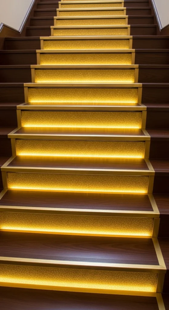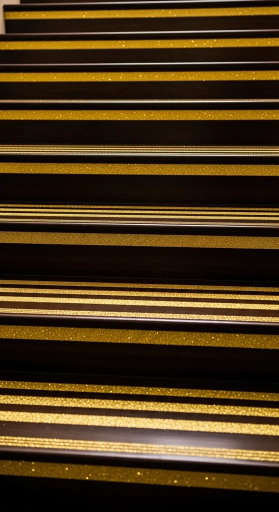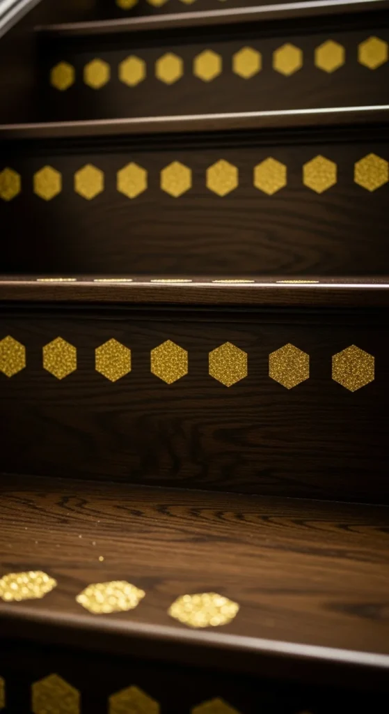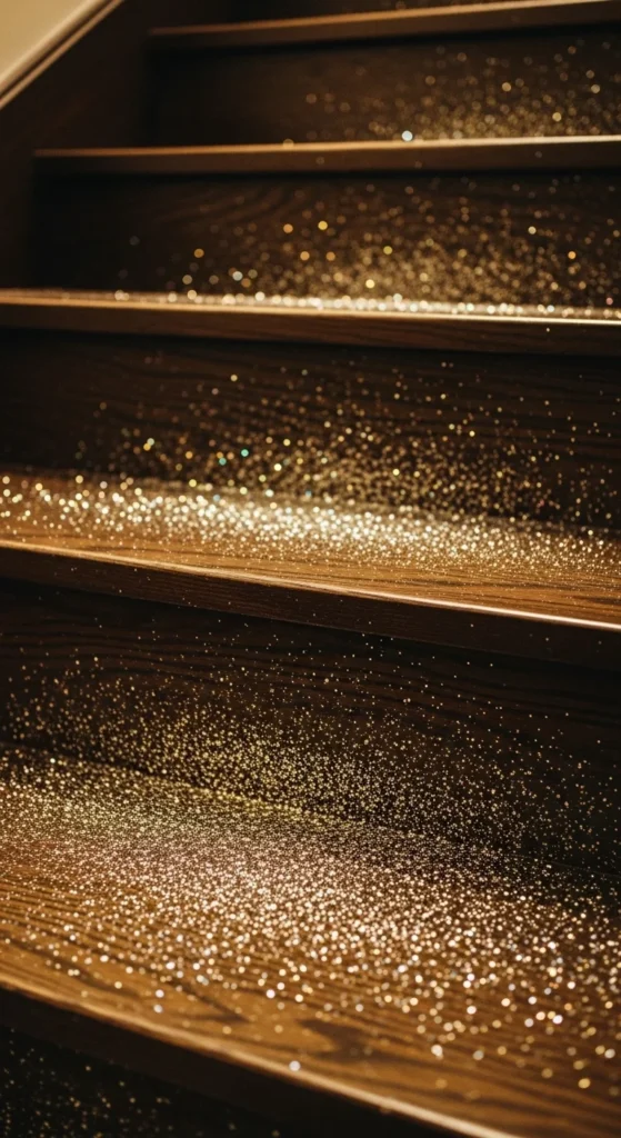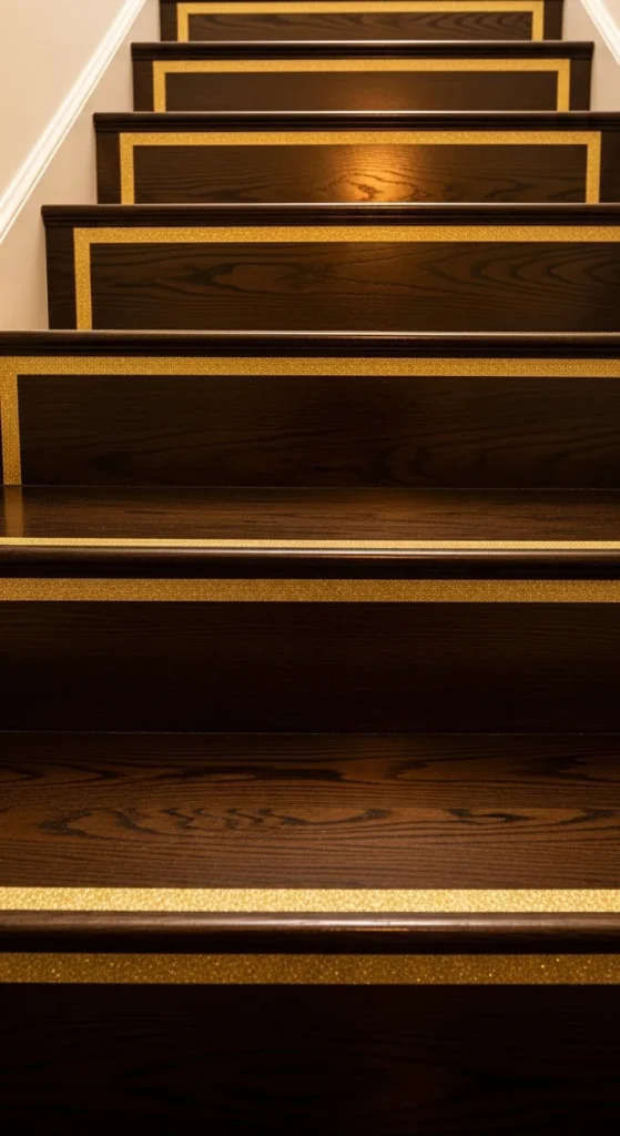 12. Gold-Glitter Edging on Dark Wood Stairs