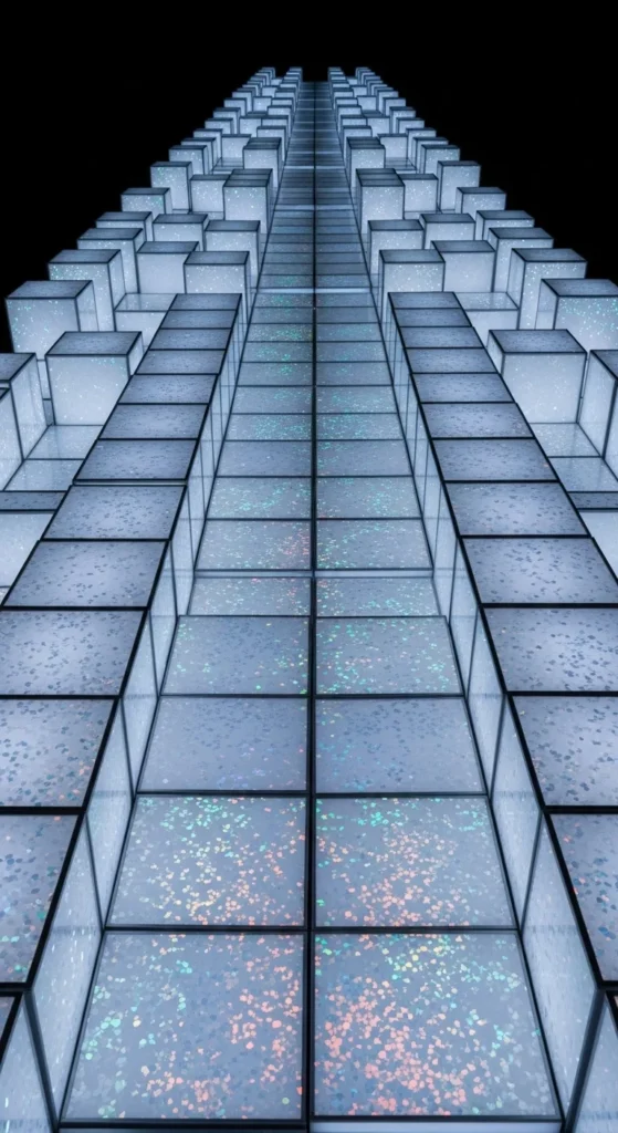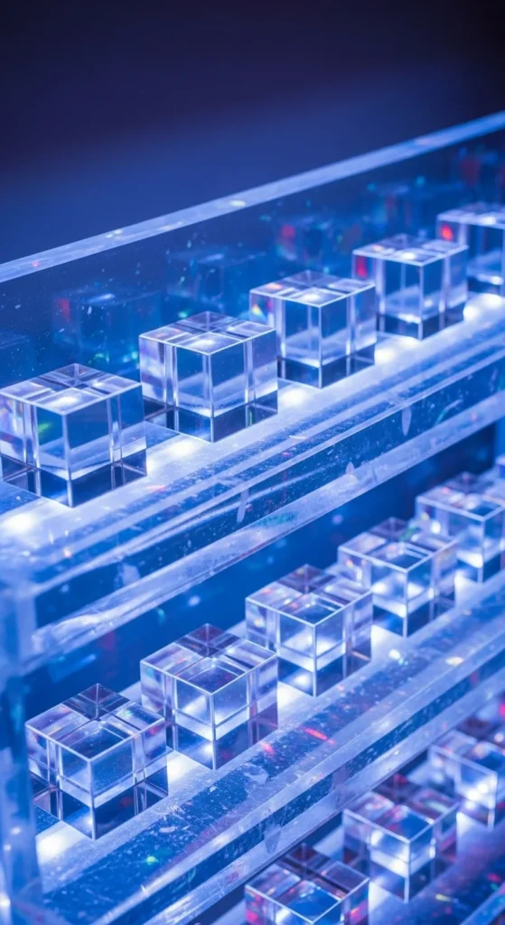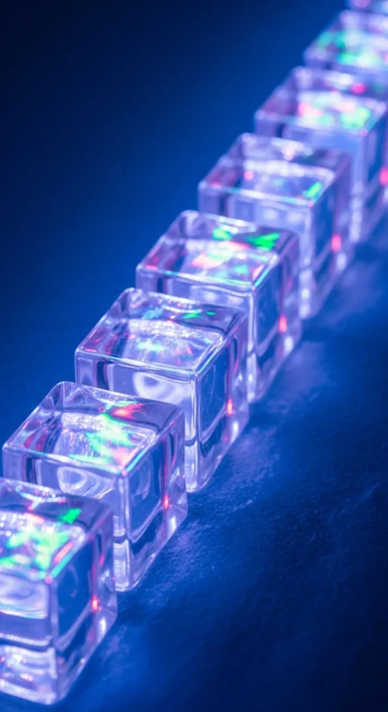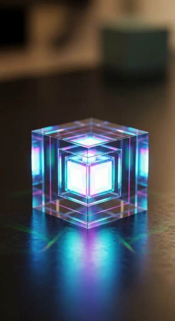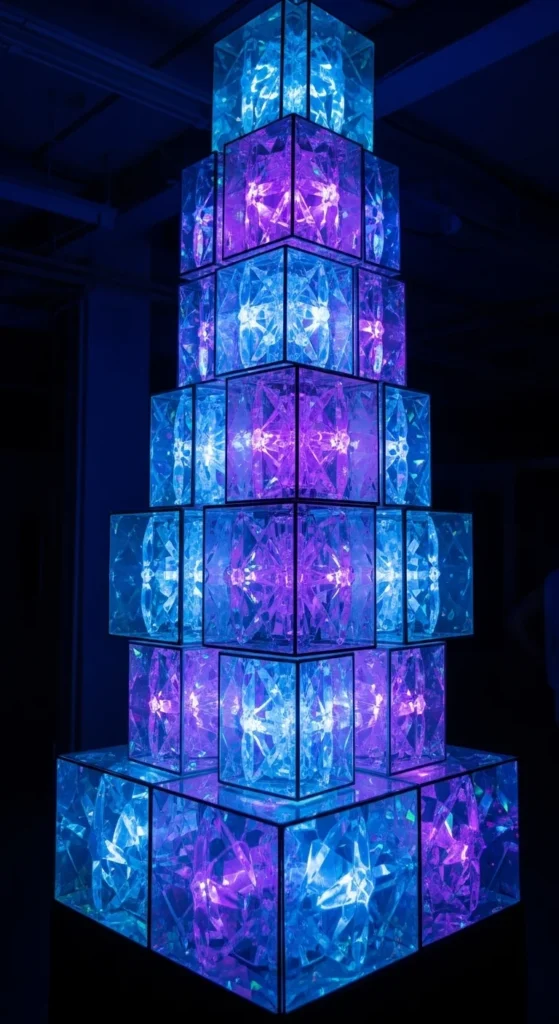 Arrange holographic cubes across floating shelves for a vertical glow moment. Keep spacing even and colors consistent. Add an LED strip along the back of each shelf to create a frosty effect. For a lower-cost method, use lightweight hollow cubes—it reduces material usage. This display works well in narrow rooms where floor space is limited.
