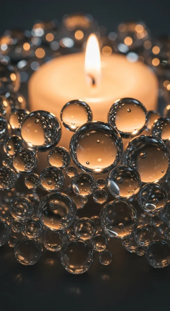 Buy or craft clear-glass orbs or round beads. Arrange them in clusters around a votive holder like frozen bubbles. Add cool light underneath to push glow through clear spheres.