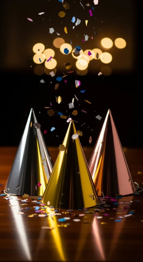 Metallic party hats make décor feel lively, bright, and full of momentum. Their shine works in small accents or big displays, and they fit almost any theme or budget. With a mix of simple styling and creative placement, you can use these hats across tables, walls, shelves, and corners to shape a fun New Year atmosphere. Try a few ideas, adjust the colors to your space, and let the metallic glow help set the energy for the celebration ahead.