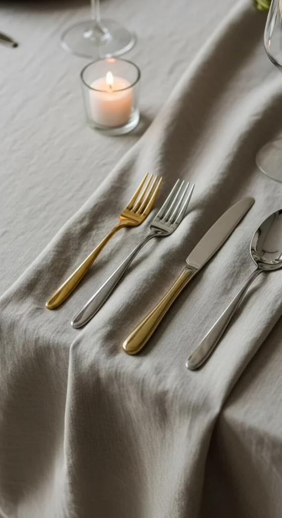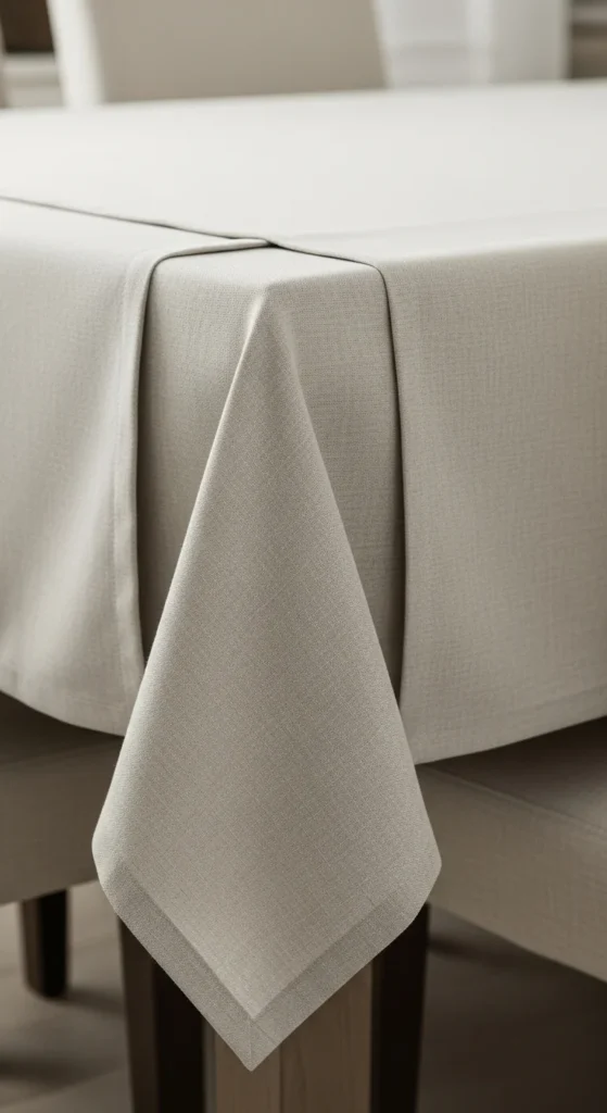 A greige tablecloth provides a balanced tone between warm and cool shades. Pair it with metallic cutlery for contrast. Keep plates matte or speckled to maintain texture interest. If metallic looks too sharp, mix in a wooden board as a middle layer for side dishes. Keep patterns away from napkins so greige remains the visual anchor.