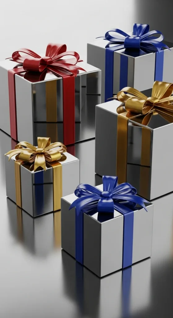 Add satin ribbons around cubes like wrapped gifts. Keep ribbon width thin so tiles stay visible. Place in a minimal backdrop area for holiday-styled shots.