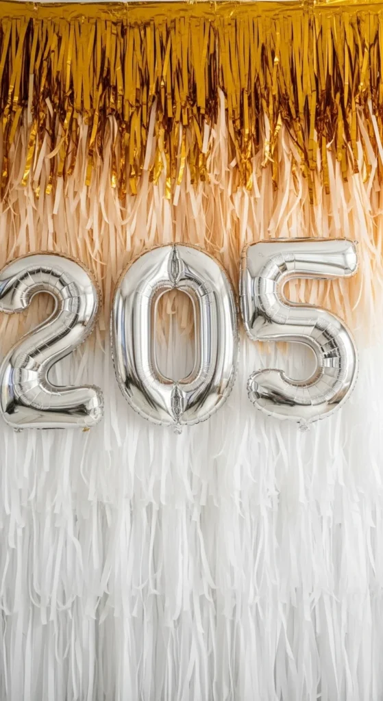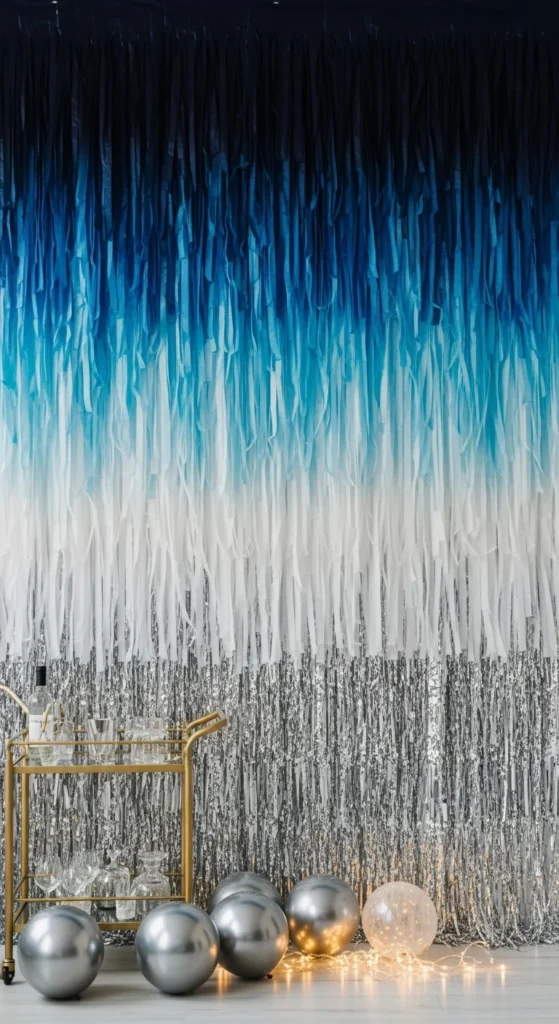 Ombré streamer walls turn any New Year corner into a photo-ready backdrop. The color fade gives depth, while simple materials keep everything manageable and budget-friendly. You can work with paper streamers, plastic streamers, or fabric strips, and still get a polished look. Whether you’re decorating behind a bar cart, framing a dessert table, or creating a selfie zone, these ideas help you set up eye-catching gradients using easy steps, smart color choices, and affordable supplies you can reuse or recycle after the party.