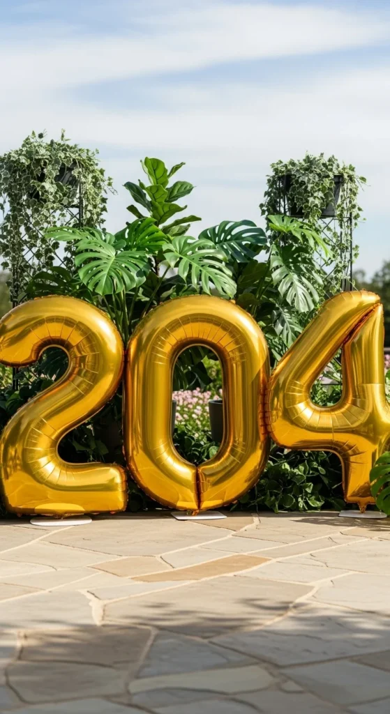 Use oversized balloon numbers outdoors if weather permits. Secure them with extra weights or tie them to short stakes. The natural light gives metallic balloons extra shine.
