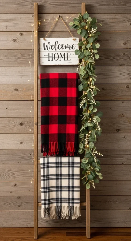 An old ladder can be a rustic showpiece. Drape with blankets, greenery, or string lights. It’s perfect for small spaces and adds vertical interest.