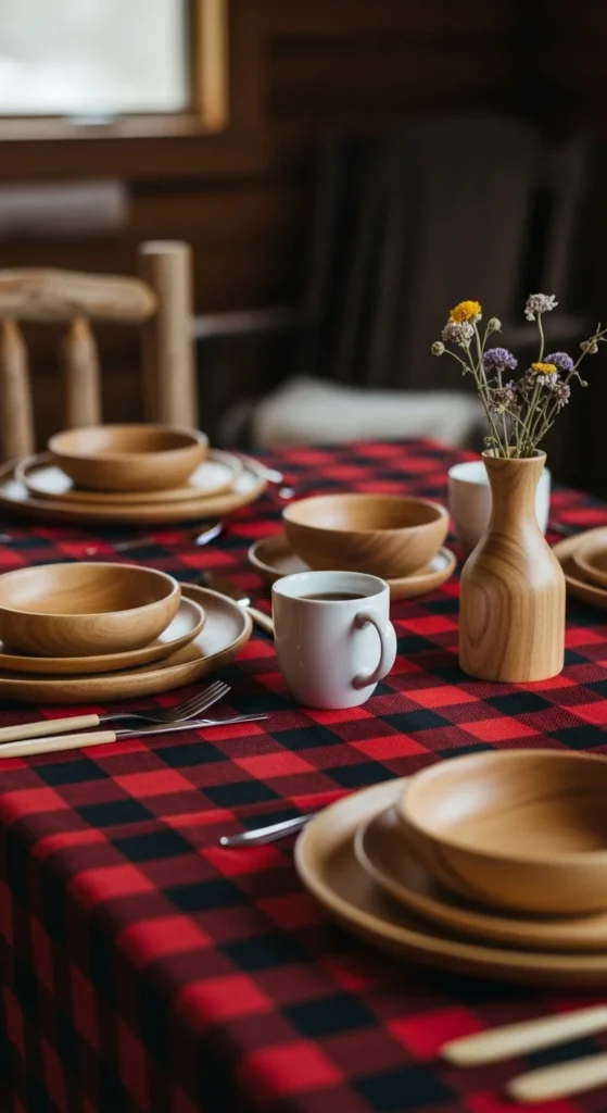 Swap formal linens for a flannel blanket or fabric. It instantly adds warmth and pattern to your table. You can find old flannel at thrift stores for just a few dollars.