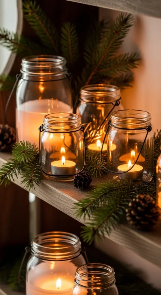 Turn mason jars into glowing lanterns. Fill with tea lights or small LED candles. Wrap the rims with twine or burlap. Place them on shelves or tables. This project is simple and inexpensive, yet brings a warm, rustic glow to your space.