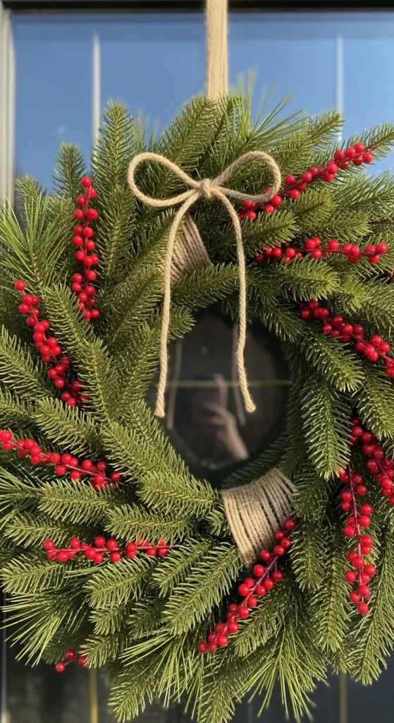 Create your own wreath using fresh greenery and twine. Add berries or pinecones for extra charm. DIY tip: secure the base with a wire hanger bent into a circle. This natural wreath feels handcrafted and authentic without requiring costly materials.